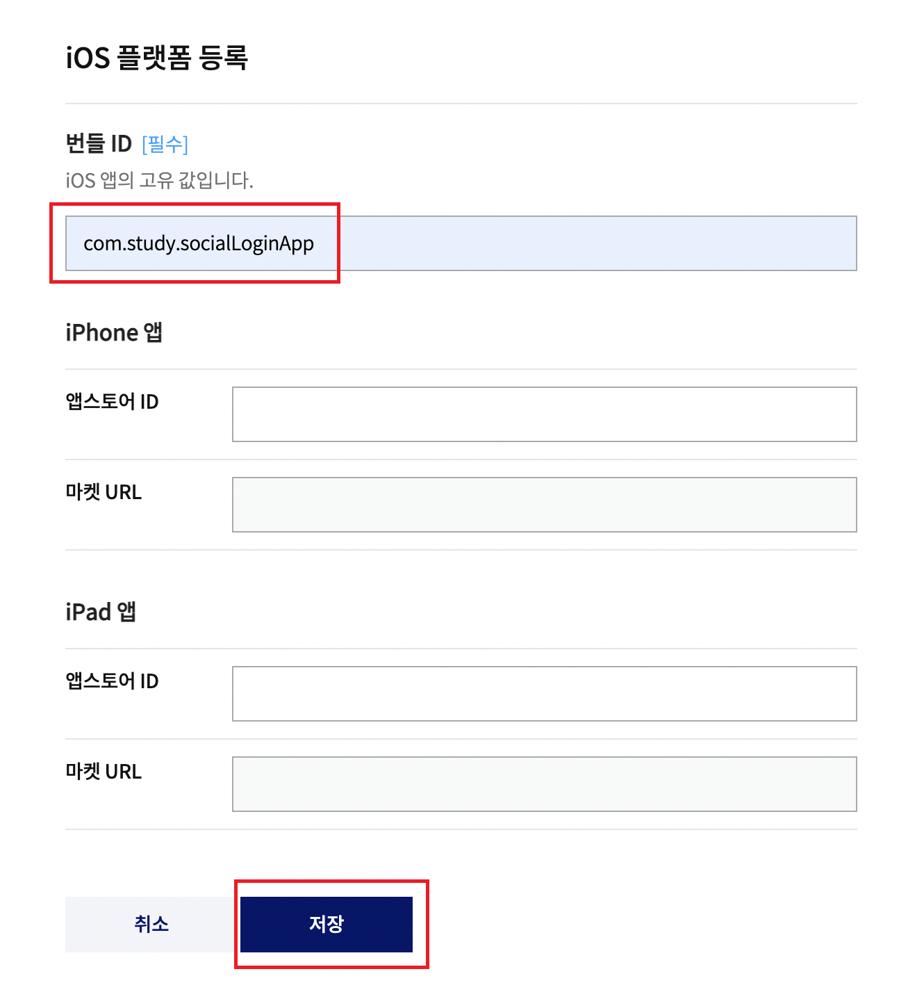 - 번들 ID 를 넣어주고 저장을 누릅니다.