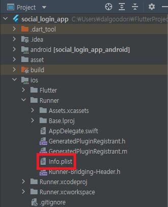 - Info.plist 에서 iOS URL 스키마 값인 네이티브 앱 키를 넣어주면 IOS 셋팅이 끝납니다.
