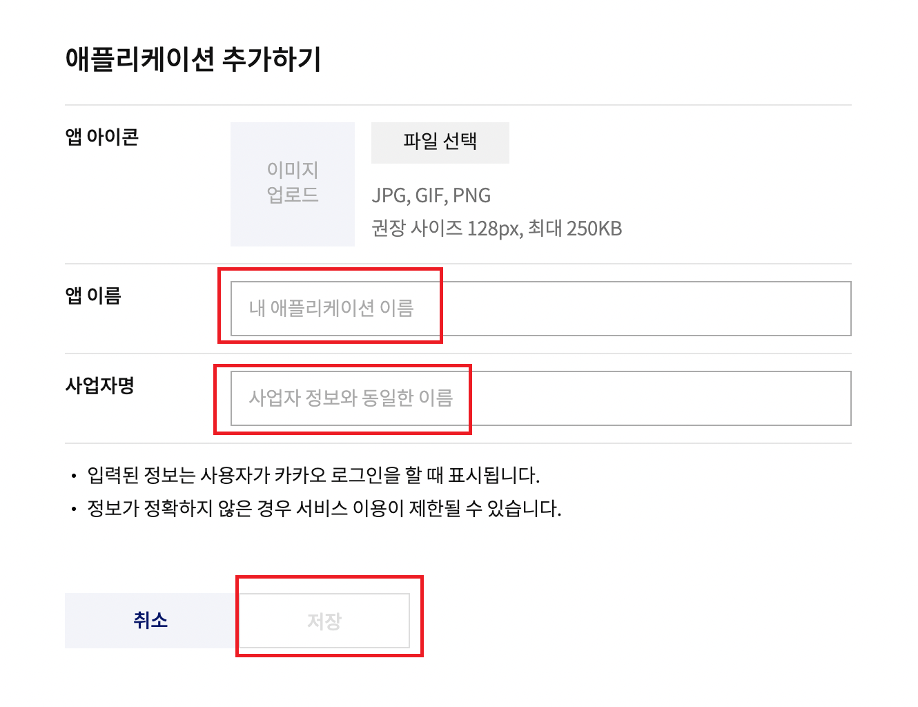 - 이름, 사업자명을 적어주고 저장을 눌러주세요.