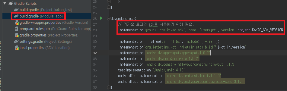 implementation group: 'com.kakao.sdk', name: 'usermgmt', version: project.KAKAO_SDK_VERSION